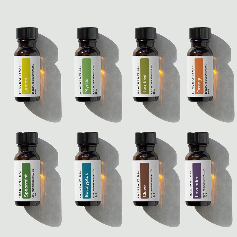 Sense of smell is the oldest and strongest sense in the body. It can help us detect harm from far away, or in most cases, it helps us find peace and balance between our body and mind. Fragrantina Perfect 8 Essential Oil Set is made of 100% pure and natural certified organic therapeutic grade quality aromatherapy oils. Our fragrance oils offer a variety of uses from aromatherapy to improving overall wellness, massage therapy or even to just initiate a sense of peacefulness and relaxation. Essential oils are extracted from root, seed, flower, leaf, or bark of a tree or plant. Because it is pure and natural, it holds powerful and incredibly beneficial compounds. Any oil from our essential oil set can be diffused or topically applied (only when diluted) to experience its unique properties or even just to feel connected with nature. This set of aromatherapy oils comes with Lavender Essential Oil, Pure Peppermint Oil, Tea Tree Oil, Lemon Oil, Sweet Orange Oil, Limon Oil, Myrtle Oil, and Eucalyptus Oil. Because essential oils are highly potent, direct application without dilution can cause dryness or irritation on the skin so it is important to always dilute your favorite essential oil with any carrier oils of your choice to make it safe for topical application.[1] Fragrantina products are free from harsh ingredients and cruelty free. Our products are manufactured in a facility in France,spain and morocoo where we use renewable energy sources. This multi-purpose, super-food oil is the easiest way to simplify your self-care routine. Just a few drops revitalize, moisturize, tone, and revive hair and skin cells.[1,2,3]